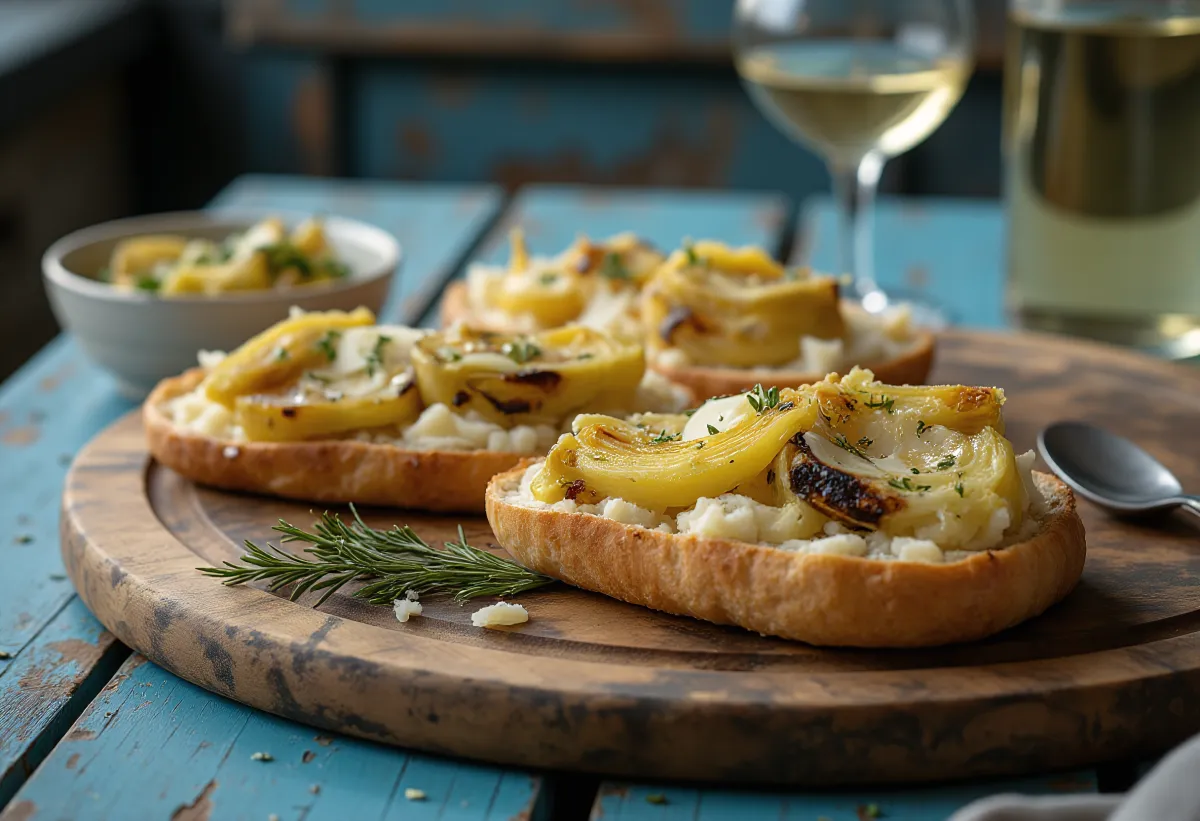 Bereite die Artischocken vor, während der Teig geht. Bei frischen: Entferne die harten äußeren Blätter, schneide die Spitze ab, entferne das "Heu" im Inneren und schneide sie in Scheiben. Bei Dosenware: Gut abtropfen lassen. Brate die Scheiben in einer Pfanne mit wenig Öl goldbraun an.